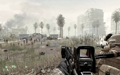 Graphics: Graphically, Call of Duty 4 looks incredible. The smoke and particle effects are especially amazing, and there is a real sense of presence to everything. Maps are highly detailed and character models move in an unnervingly lifelike way.The overall gameworld detail is astonishing, and everything animates very realistically.Overall presentation is excellent, shrapnel, bullets, debris, exploding buildings, interiors, make no mistake the environments here are some of the best.